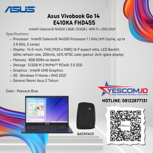 Rp 7.805.000 Rp 8.000.000Asus Vivobook Go 14 E410KA FHD455 | N4500 | 8GB | 512GB SSD | 14″ FHD | Win 11 Home+OHS 2021 [E410KA-FHD455]