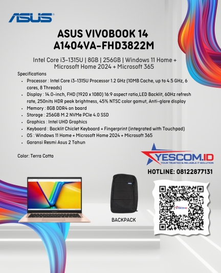 Rp 6.595.000 Rp 7.000.000Asus Vivobook Go 14 E1404GA FHD351M | Core i3-N305 | 8GB | 512GB SSD | 14″ FHD | Win 11 Home+OHS 2021+M365