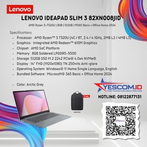 Rp 9.340.000 Rp 9.500.000Lenovo IdeaPad Slim 3 82XN008JID | AMD RYZEN 3-7320U | 8GB | 512GB SSD | 14″ FHD IPS | Windows 11 Home+Office Home 2024+Microsoft 365 | [ 82XN008JID]