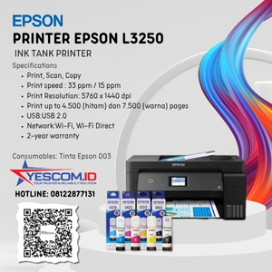 Tipe Printer: Tipe Printer:Cetak, Pindai, Salin Teknologi Pencetakan: Metode Cetak:On-demand inkjet (piezoelectric)Volume Tetesan Tinta Minimum:3 plBahasa Printer:ESC / P-RArah Cetak:Pencetakan Dua Arah, Pencetakan Satu ArahKonfigurasi Nozzle:180 Nozzle Hitam, 59 Nozzle per warna (Cyan, Magenta, Kuning)Resolusi Maksimum:5760 x 1440 dpi (dengan Teknologi Tetesan dengan Variasi Ukuran)Pencetakan Otomatis 2 Sisi:Ya (Hingga A4) Kecepatan Cetak: Default Foto –…