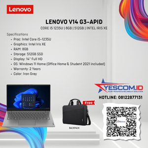Lenovo V14 G3 – APID (Iron Grey) Intel® Core™ i5-1235U|8GB|512GB|Intel® Iris® Xe Graphics|Windows 11 Home + OHS 2021