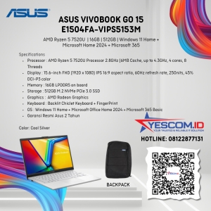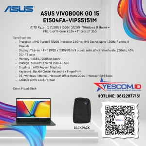 Rp 9.125.000 Rp 9.500.000Asus Vivobook Go 15 E1504FA -VIPS5151M | Ryzen 5 7520U | 16GB | SSD 512GB | 15.6″ FHD | W11+OHS+M365