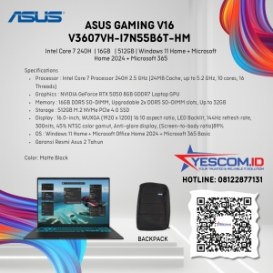 Rp 4.675.000 Rp 5.500.000Asus Gaming V16 V3607VH-I7N55B6T-HM | Intel Core 7 240H | 16GB | SSD 512GB |16″ RTX5050 | W11+OH2024+M365