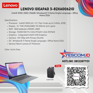 Rp 4.537.500 Rp 5.000.000Lenovo IdeaPad Slim 3 14IAN8 82XA0062ID | Intel N100 | 8GB | SSD 512GB | 14″ | W11+OH2024