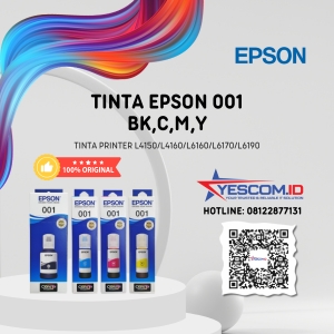 Tinta Epson 001 Tersedia warna Black, Cyan, Magenta, Yellow 100% Original Epson & Baru Black 127 ml, Color 70 ml Compatible dengan printer: L4100series(L4150,L4160) L4200series(L4260) L6100series(L6160,L6170,L6190) L6200series(L6270,L6290) L14100series(L14150)