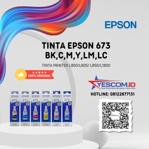 Tinta Original epson untuk seri : L800 L805 L810 L850 L1800 Ready warna berikut : 673-1 = BLACK 673-2 = CYAN 673-3 = MAGENTA 673-4 = YELLOW 673-5 = LIGHT CYAN 673-6 = LIGHT MAGENTA