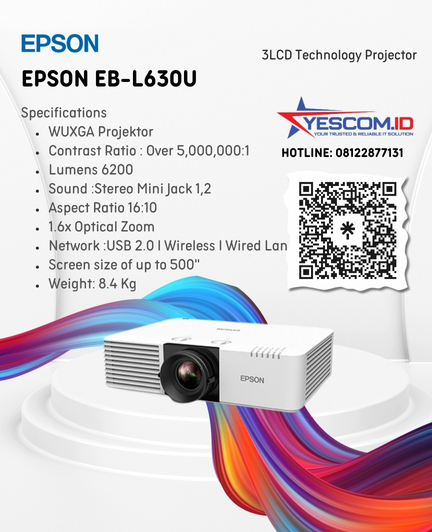 Projection Technology: Projection Technology:RGB liquid crystal shutter projection system (3LCD) Brightness*1: White Light Output (Normal/Eco):3,600 lm / 2,400 lmColour Light Output:3,600 lm Konektivitas: Antarmuka USB:USB Type A: 1 (For Wireless LAN, Firmware Update, Copy OSD Settings) USB Type B: 1 (For Firmware Update, Copy OSD Settings)Jaringan:Wireless: Optional (ELPAP11) Wired LAN : 1 (RJ45)Analog Input:Composite: 1…