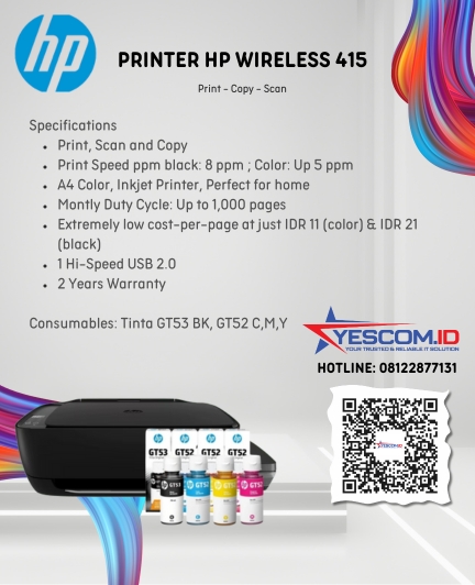 HP DJ2336 Print Scan Copy – White Spesifikasi Support Cartridge : HP 682 Black (~480 Pages) HP 682 Color (~150 Pages) Spesifikasi : Function : Print, Scan, Copy Print Speed (ISO) ppm Black : 7.5 Print Speed (ISO) ppm Color : 5.5 Monthly Duty Cycle : Up to 1,000 pages Page yield : 480 (B)…