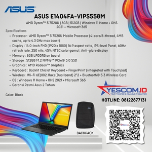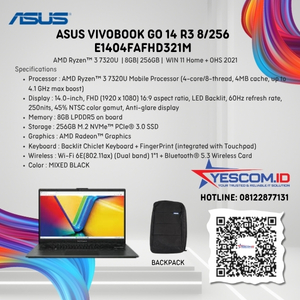 Rp 7.805.000 Rp 8.500.000Asus Vivobook Go 14 E1404FA FHD321M | AMD Ryzen 3-7320U | 8GB | 256GB SSD | 14″ FHD | Win 11 Home+OHS 2021+M365 [E1404FA-FHD321M ]