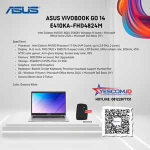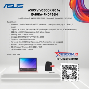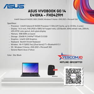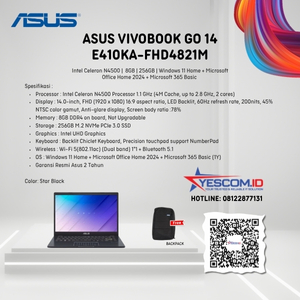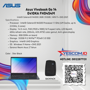 Rp 5.385.000 Rp 6.000.000Asus Vivobook Go 14 E410KA FHD454M | N4500 | 8GB | 512GB SSD | 14″ FHD | Win 11 Home+OHS 2021+M365 [ E410KA-FHD454M ]