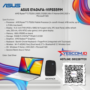Rp 6.347.000 Rp 7.000.000Asus Vivobook Go 14 E1404FA VIPS559M | Ryzen 5-7520U | 8GB | 512GB SSD | 14″ FHD IPS | Win 11 Home+OHS 2021+M365 [E1404FA-VIPS559M]