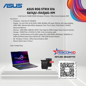 Rp 5.385.000 Rp 5.500.000Asus ROG Strix G16 G614JU-I545J6G-HM | Core i5-13540HX | 16GB | 512GB SSD | RTX4050 6GB | 16″ FHD+ IPS 165Hz | Win 11 Home+OHS 2021 | Eclipse Gray
