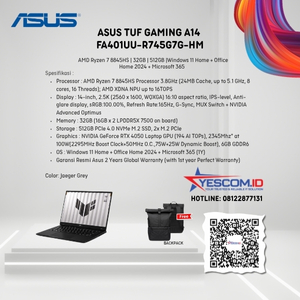 Rp 6.265.000 Rp 6.500.000Asus TUF Gaming A14 FA401UU-R745G7G-HM | Ryzen 7-8845HS | 32GB | 512GB SSD | RTX4050 6GB | 14″ 2.5K 165Hz | Win 11 Home+OHS 2021+M365 | Jaeger Grey
