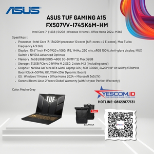 Rp 6.265.000 Rp 7.000.000Asus TUF Gaming A15 FX507VV I745K6M HM | Inter Core 7-13620H | 16GB | 512GB | RTX 4060 8 GB | Win 11 Home+OHM 2024+Microsoft 365(1Y) | Mecha Gray