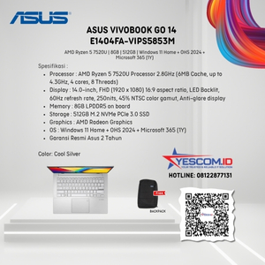 Rp 6.485.000 Rp 7.000.000Asus Vivobook Go 14 E1404FA VIPS5851M | AMD Ryzen 5-7520U | 8GB | 512GB SSD | 14″ FHD | Win 11 Home+OHS 2021+M365