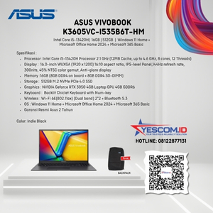 Rp 5.165.000 Rp 5.300.000Asus Vivobook 16X K3605VC-I535B6T-HM | Intel Core i5-13420H | 16GB | 512GB SSD | 16″ WUXGA IPS 144 Hz | Win 11 Home+OHM 2024+M365 | Indie Black