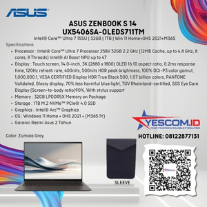 Rp 15.785.000 Rp 16.000.000Asus Zenbook S 14 UX5406SA OLEDS711TM | Ultra 7 258V | 32GB | 1TB SSD | 14″ 3K Touch | Win 11 Home+OHS 2021+M365 [UX5406SA-OLEDS711TM ]