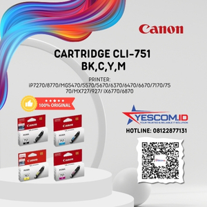 CANON INK CARTRIDGE CLI-751 Cartridge For MG7170, MG7570, MG 6470, MG5570, MG5670, MX727, MX927, iX6770, iX6870, iP7270, iP8770 Warna : Black, Cyan, Magenta, Yellow