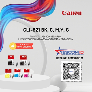 Rp 165.000Tinta Canon CLI 821 ORIGINAL (Black, Yellow, Grey)