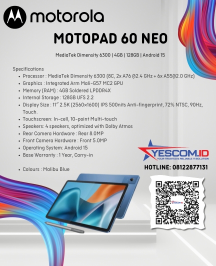 Rp 1.240.000 Rp 1.500.000Motorola Motopad 60 Lite MediaTek Helio G85 (4/128GB) 10.1″ WUXGA 5100mAh