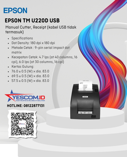 Rp 1.612.000 Rp 1.685.000Epson TM-U220IIB-422 USB Dot Matrix Auto Cutter Receipt Printer