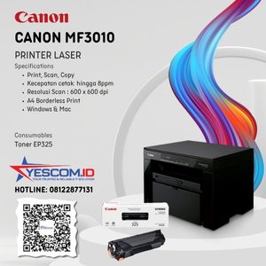 Rp 9.350.000 Rp 10.000.000Printer Canon imageCLASS MF3010 (Print Scan Copy) Laserjet Hitam Putih