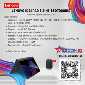 Lenovo IdeaPad 5 2-in-1 14IRU9 – 83DT000BID (Cosmic Blue) Intel® Core™ 7 150U|16GB|256GB|Integrated Intel® Graphics|14″ WUXGA (1920×1200) IPS|Windows 11 Home + OHS 2021